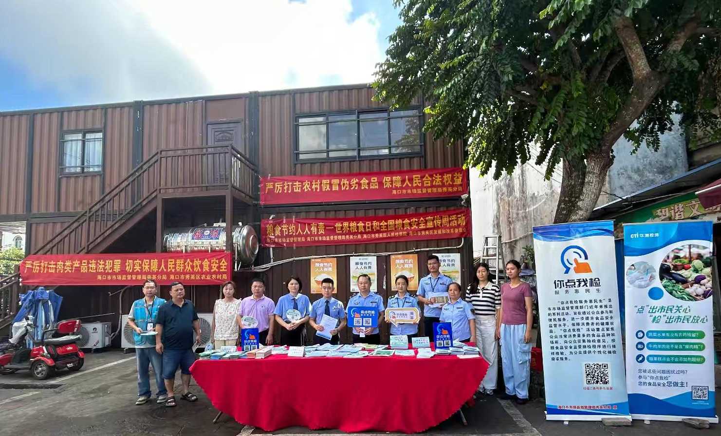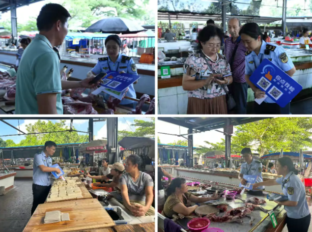 2025年10月16日,海口市市场监视办理局正在永兴自产自销便平易近点开展“粮食节约人人有责—世界粮食日和全国粮食平安宣传周”“你点我检”之“苍生点检日”“峻厉冲击肉类产物违法犯罪”“峻厉冲击农村冒充伪劣食物宣传勾当”。海口市区人平易近查察院、海口市区成长和委员会、